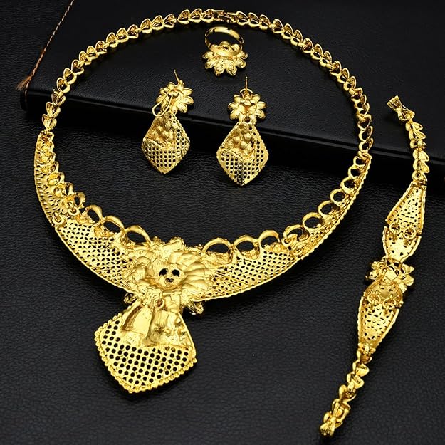 Glamorous Gold Plated Choker Necklace Set for Women