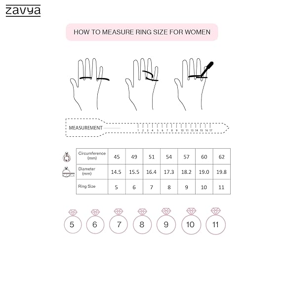 • Packaging: The ring comes in an attractive jewelry box containing a Zavya jewelry kit with soft foam, a lovely envelope with essential information, and silver authentication certification.