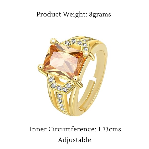 Yellow Sapphire Style Big Yellow Crystal Golden Ring for Women and Girls